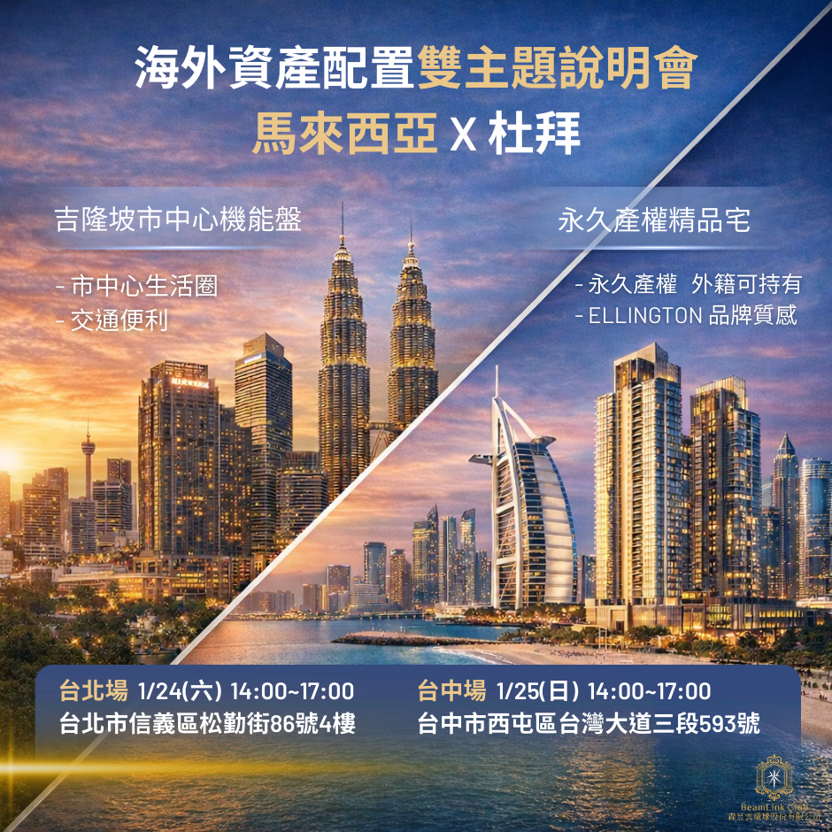 【海外資產配置:馬來西亞 X 杜拜】雙主題說明會報名中!